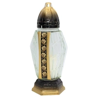 Znicz Zdobiony Szklany Tradycyjny Prosty Cmentarz Złoty z Czarnym L229