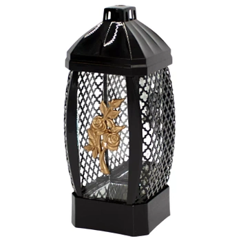 Lampion Znicz Kapliczka Siatka Mała Złoto Róża Czarny Prosty LL18