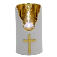 Znicz Ceramiczny Kapliczka Biała z Krzyżem Połysk Solidny Kubek LC18