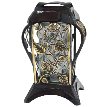 Nowoczesny znicz na wkład szklany zabudowany czarno złoty LL88