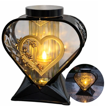Znicz Solarny Czarno Złoty Serce LL91