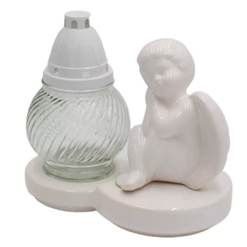 Znicz Ceramiczny Anioł Mały Biały Piękny Wyjątkowy LC20