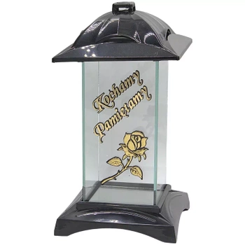 Znicz Zdobiony Szklany Tradycyjny Prosty Cmentarz Złoty z Czarnym L229
