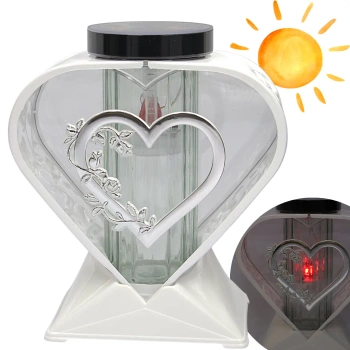 znicz solarny LED LL91 serce nowoczesny biało-srebrny czerwone światło
