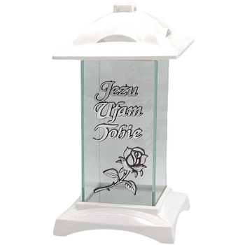 Znicz Prosty z Dedykacją Jezu Ufam Tobie Biało Srebrny Wyjątkowy LL71