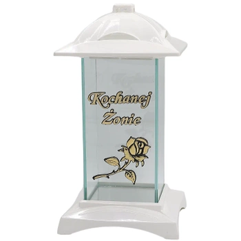 Znicz Dedykacja Biało Złoty Napis Kochanej Żonie na Cmentarz Lampion LL71