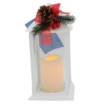Latarenka Biała Lampion Świeca Ecry Świąteczna Gałązka C26