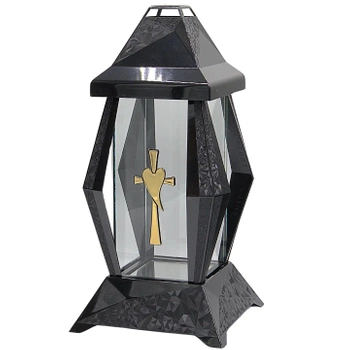 Znicz Zdobiony Szklany Tradycyjny Prosty Cmentarz Złoty z Czarnym L229