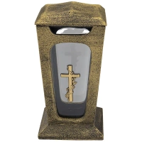 Znicz żywiczny kamienny 28 cm z krzyżem szkło gruby solidny lampion LK22