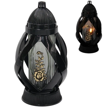 Znicz Duży Efektowny Lampion Czarno- Zloty Subtelnie Zdobiony LG49