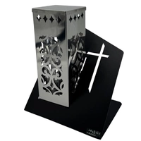 Znicz Metalowy Paris D Ornament Krzyż Tuba Srebrna na Wkład LM21