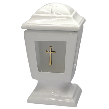Znicz Ceramiczny Biały Kapliczka z Krzyżem Złotym Wyjątkowy Klasyczny ZC19