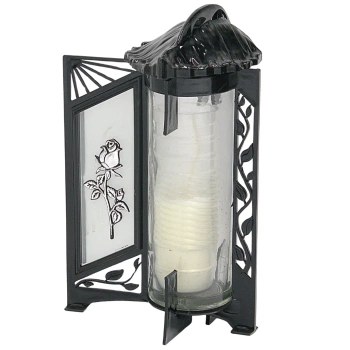 Znicz Artystyczny Witraż Róża Czarno Srebrny Nowość Wkład Gratis LG33