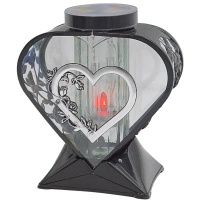 Znicz solarny LED LL91 serce srebrny czerwone światło elegancki lampion