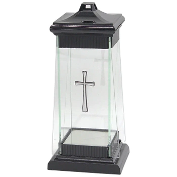 Znicz Szybka Mini Czarny Tradycyjny Nagrobny Srebrny Krzyż LL32