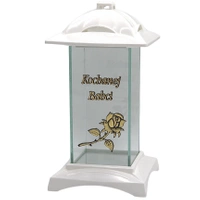 Znicz Napis Kochanej Babci Lampion Biało Złoty na Grób LL71