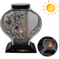 Duży Znicz Kula na pomnik solarny Czarne zdobienia szkło LG57