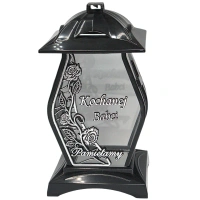 Duży znicz korona czarno złoty LL98 na pomnik sentencja na wkład szklany