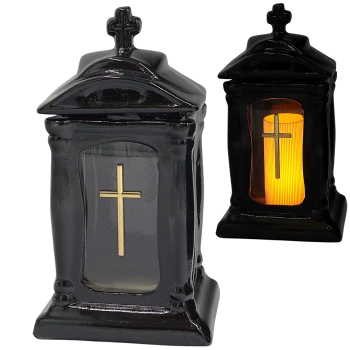 Znicz Kapliczka Ceramiczna Czarna Kielich Duży na wkład z krzyżem ZC26
