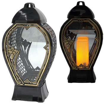 Znicz Duży Efektowny Lampion Czarno- Zloty Subtelnie Zdobiony LG49