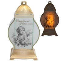 Znicz z Wizerunkiem Anioła Biało Złoty LL96