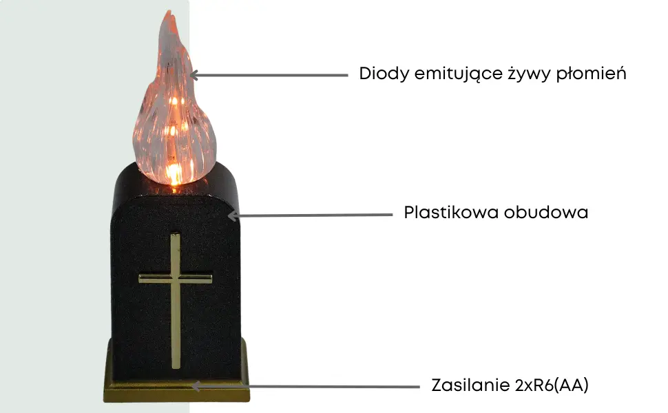 Nowoczesny wkład LED imitujący naturalny płomień. Klasyczna stylistyka, trwałość i bezpieczeństwo użytkowania – idealny do zniczy i kapliczek.