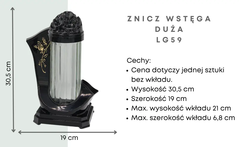 Stylowy znicz z charakterystyczną boczną aplikacją w kształcie róży to idealna propozycja na grób bliskiej osoby. Nowoczesna forma i wytrzymałe materiały czynią go wyjątkową dekoracją, która podkreśla powagę miejsca pamięci.