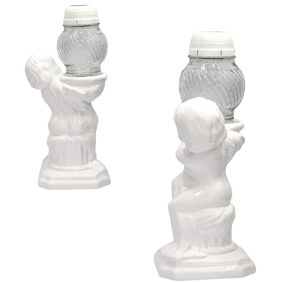 Lampion znicz ceramiczny lc17 biały anioł solarny led na cmentarz elegancki