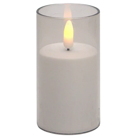 Elegancka świeca LED w formie tuby, imitująca prawdziwy płomień. Dzięki ciepłej barwie światła i efektowi świecy w szkle, stanowi doskonałą dekorację do domu, restauracji, kapliczek czy hoteli.