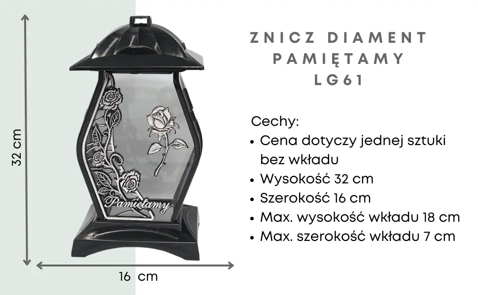 ✨ Znicz Diament „Pamiętamy” LG61 – elegancja w czarno-srebrnym wykończeniu