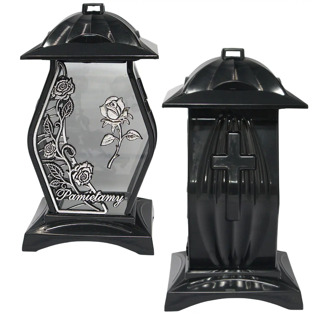 Czarno-srebrna kolorystyka wnosi spokój i czystość formy, idealnie komponując się z różnymi rodzajami nagrobków – granitowymi, marmurowymi czy betonowymi.