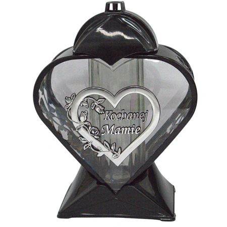 Opinie o Znicz artystyczny serce LL87 czarno-srebrny 32 cm szkło połysk Mamie