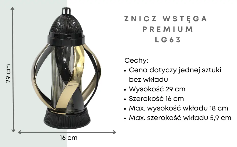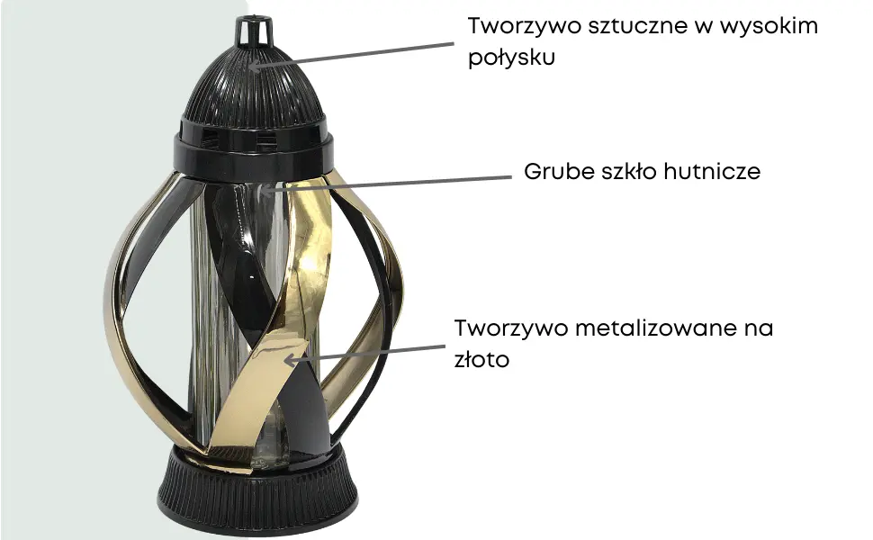 - Znicz LG63 z metalizowaną wstęgą w złotym kolorze to stylowa propozycja na grób bliskiej osoby. Połączenie szkła hutniczego i połyskującego tworzywa prezentuje się niezwykle elegancko i nowocześnie.