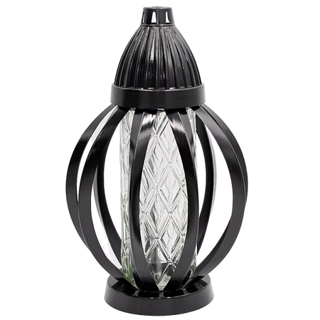- Znicz Lampion Ażur Kula Mała czarna Tuba Szklana w Romby LL35. wysokiej jakości ażurowy znicz na cmentarz. Ozdoba na pomnik. Wewnątrz szklana tuba ze wzorem w romby chroni palący się wkład.
