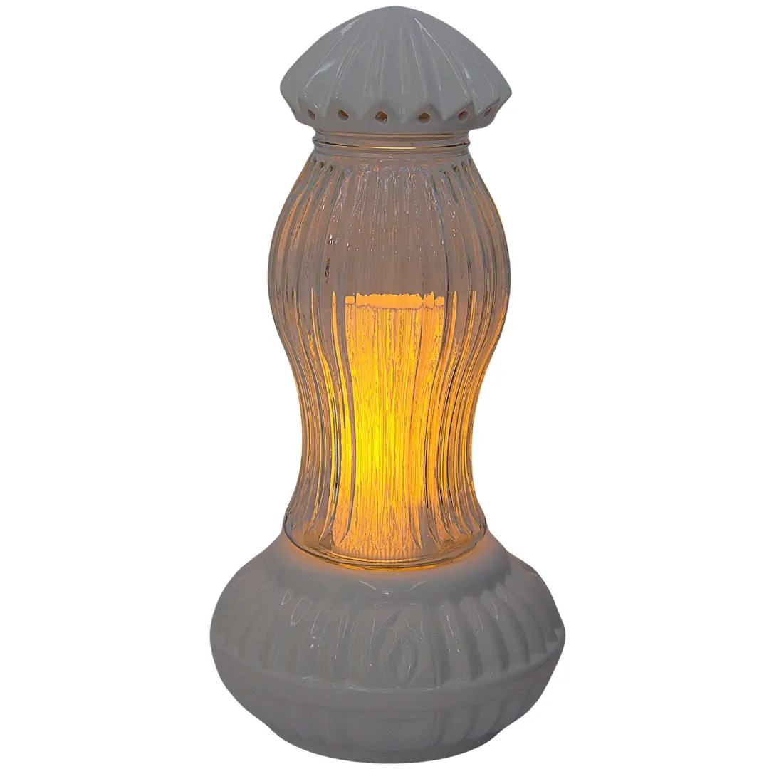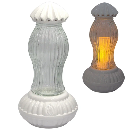 Znicz Ceramiczny Artystyczny Duży Latarnia Biały Szkło LC29