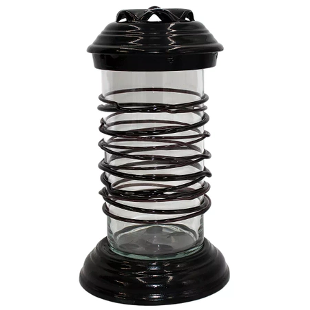 Elegancki, wysoki znicz ceramiczny o oryginalnej formie „rury” z intensywnym elementem dekoracyjnym wokół szklanej tuby. Czarny kolor ceramiki w połysku oraz spirala wokół szkła nadają zniczowi nowoczesnego i estetycznego wyglądu. Produkt sprzedawany bez wkładu – idealny do tradycyjnych oraz LED‑owych wkładów.
