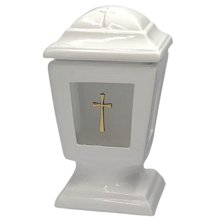Znicz Ceramiczny Kapliczka Biała Kielich z Krzyżem Złotym ZC26