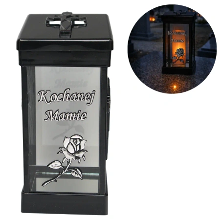 - Lampion Znicz Ozdobny Elegancki Nagrobny Czarno-Srebrny LG40