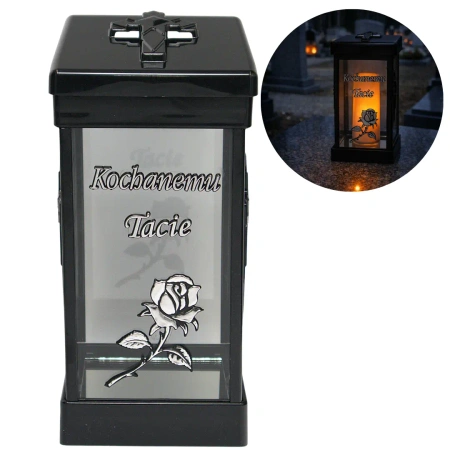 - Lampion Znicz Ozdobny Elegancki Nagrobny Czarno-Srebrny LG40