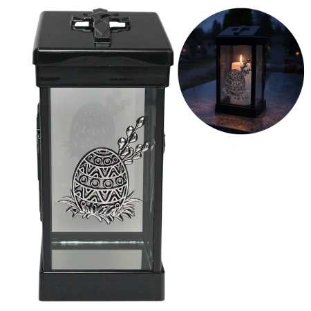 - Lampion Znicz Ozdobny Elegancki Nagrobny Czarno-Srebrny LG40