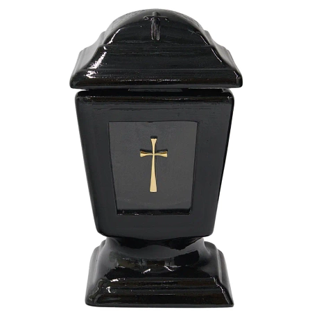 Znicz Kapliczka Ceramiczna Czarna Kielich Duży na wkład z krzyżem ZC26