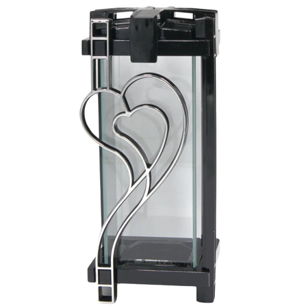 - Znicz Lampion Lustro Kwadrat New Serce Czarno-Srebrny LL15 - Lustro na dnie tworzy efekt odbitego światła. Wys. 33cm, szer. 14,5cm. Wkład max 22cm (brak wkładu). Uczcij wspomnienia bliskich. Cena za 1 szt. bez wkładu. Wysoka jakość wykonania.