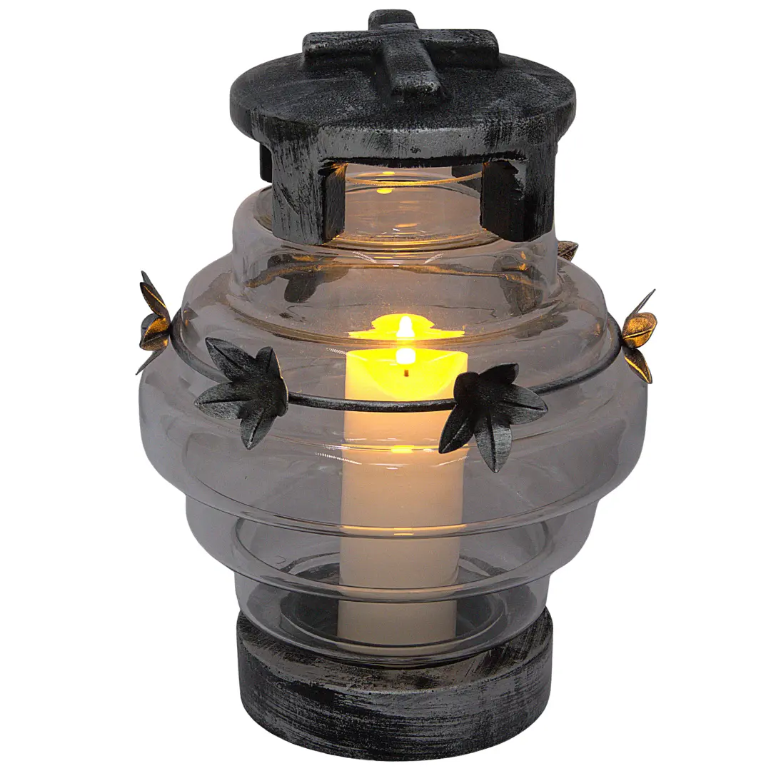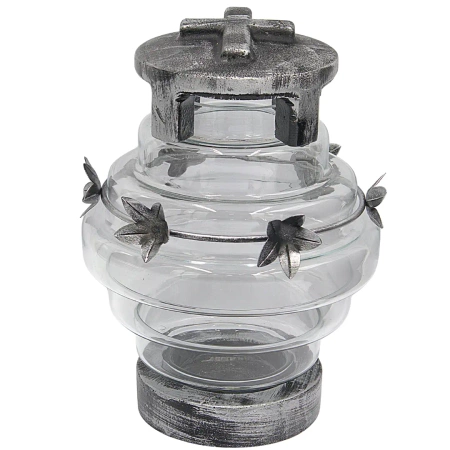 Model LK21 w wersji srebrnej to znicz klasyczny, ale niebanalny. Wysokiej jakości szkło eksponuje światło wkładu, tworząc efektowny blask, który dodatkowo podkreślają metalowe dekoracje w kolorze srebra.