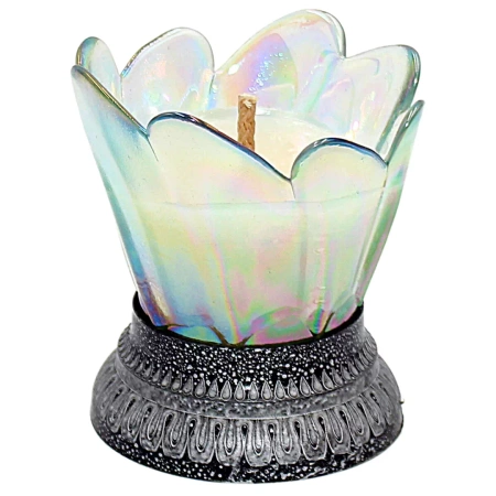 Znicz otwarty D14 kopciuch szklany opal srebrny na pomnik parafinowy