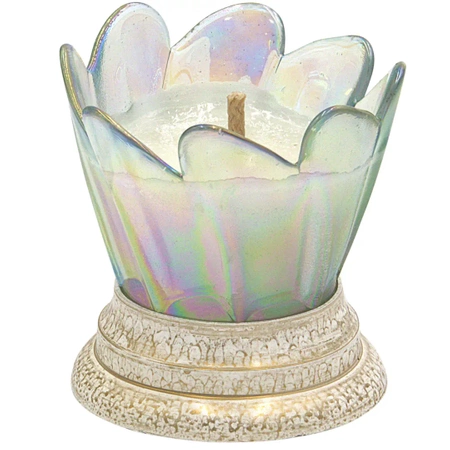 Znicz otwarty kopciuch D14 szkło tęczowe biało złoty mały grób