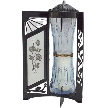 Imponujący znicz z dekoracyjnymi drzwiami ozdobionymi motywem róży. Solidna konstrukcja i przemyślany design sprawiają, że jest to doskonały wybór na ważne uroczystości i święta pamięci.