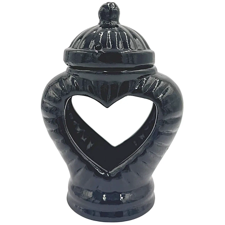 Czarny znicz ceramiczny o formie przypominającej serce to ponadczasowa propozycja na grób bliskiej osoby. Szkliwiona powierzchnia i dostojne wykończenie. Solidna ceramika gwarantuje trwałość i klasyczny wygląd.