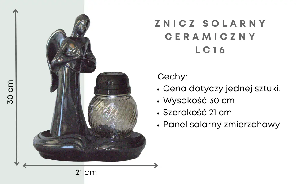 - Znicz Ceramiczny na Cmentarz Anioł Modlitwa Solidny Czarny Połysk LC16 - Wys. 30cm, szer. 21cm. Wkład wymiary max 9,5cm x 6cm. Ceramika nie jest odporna na ujemne temperatury! Wysokiej jakości produkt, oryginalny, ponadczasowy wzór.