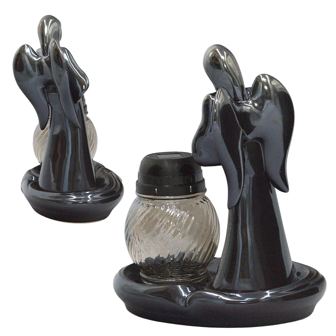 ✨ Znicz Solarny Ceramiczny LC16 – czarny Anioł Stróż ze światłem LED