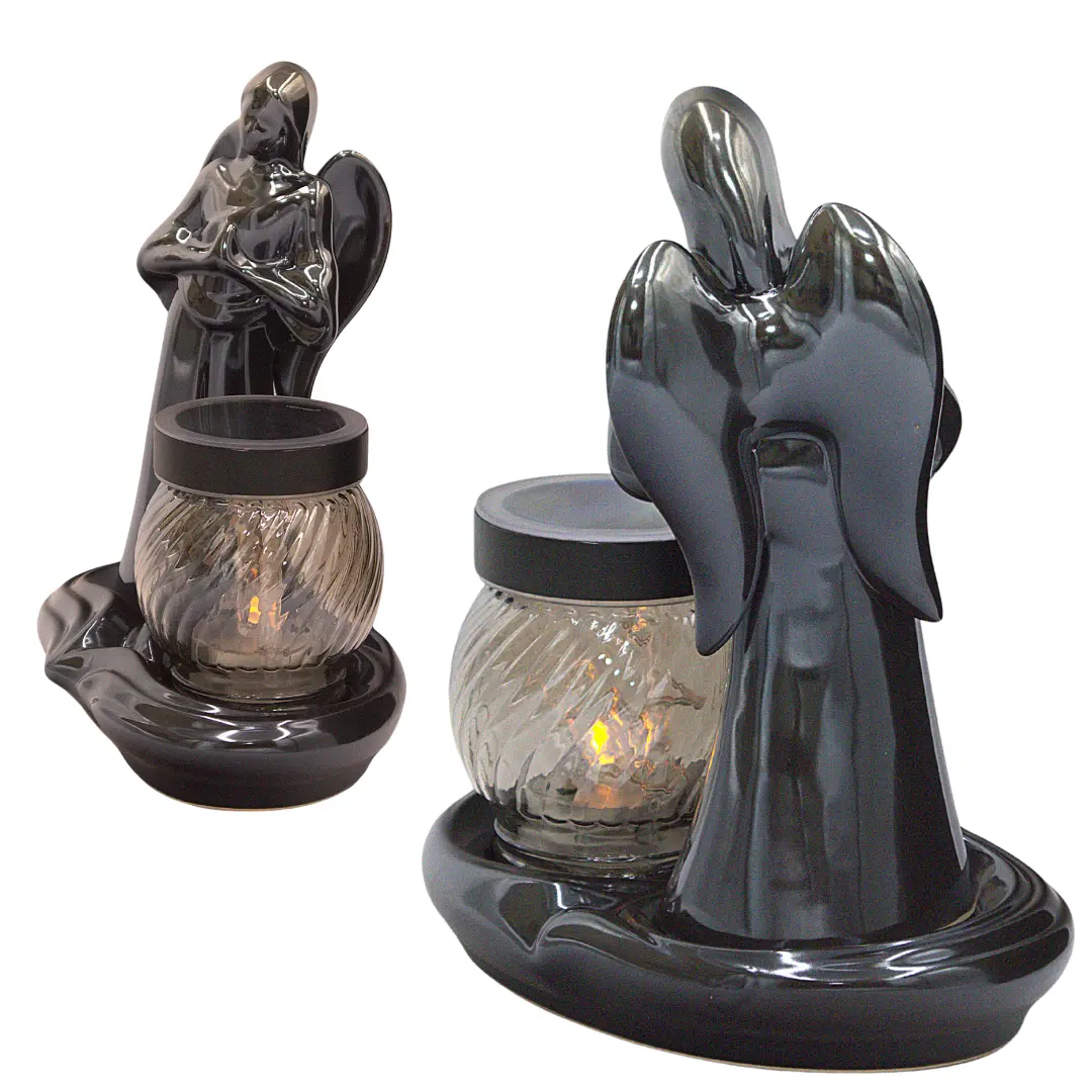 Znicz Solarny Ceramiczny Anioł A2c, LC16 Czarny